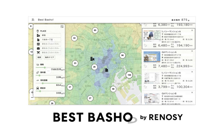 ・「BEST BASHO」とは、ご家族など複数人の通勤・通学駅からの移動時間を元に家探しを支援するシステム