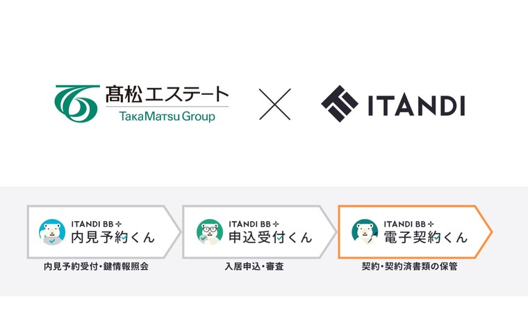 当社のグループ会社である、テクノロジーで不動産取引をなめらかにするイタンジ株式会社(以下「イタンジ」)は、2024年10月より、髙松エステート株式会社(以下「髙松エステート」)の大阪・名古屋拠点に、イタンジが提供する不動産関連電子契約システム「電子契約くん」を導入いたします。これにより、関東・関西地域を中心に管理戸数35,000戸超を有する髙松エステートの全店舗で電子契約が可能になります。