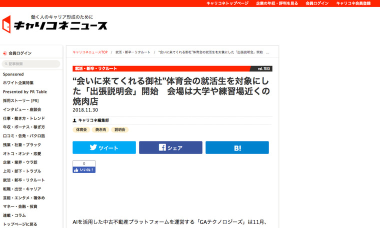 キャリコネニュースにて、部活出張説明会をご紹介いただきました。