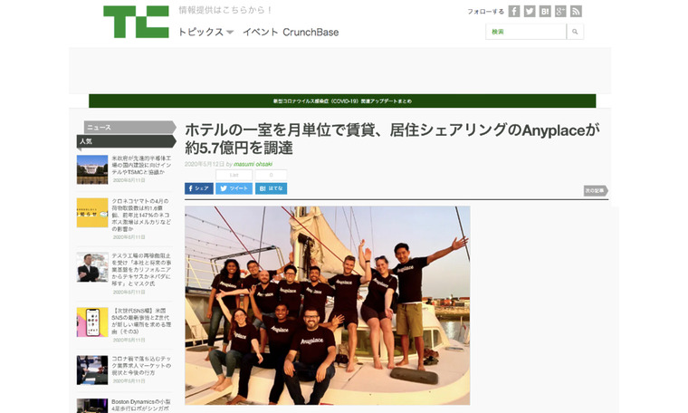 【掲載情報】TechCrunch Japan(2020.05.12)