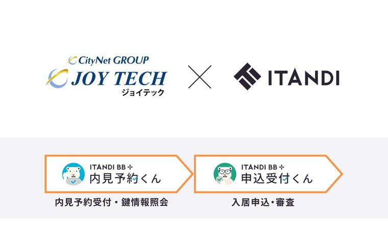 2024年8月、イタンジは、兵庫県を中心に不動産事業を軸に様々な事業を展開し、ミニミニFC14店舗を擁するシティネットグループの賃貸管理会社、株式会社ジョイテック(以下「ジョイテック」)に、 イタンジが提供する賃貸仲介会社利用率No.1(※2)の賃貸住宅の内見予約受付システム「内見予約くん」、賃貸住宅の入居申込システム「申込受付くん」を導入いたしました。