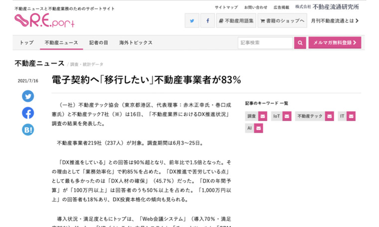 R.E.port|『電子契約へ「移行したい」不動産事業者が83%』