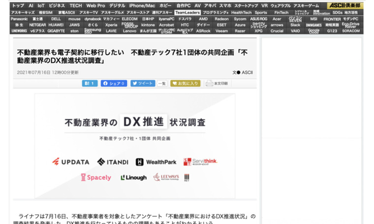 ASCII.jpにて、当社のグループ会社であるイタンジ株式会社も参画した、不動産テック7社1団体の共同調査について取り上げていただきました。