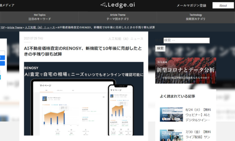 Ledge.ai にて、当社の不動産テック総合サービス「RENOSY」に新機能が搭載されたことについて取り上げていただきました。