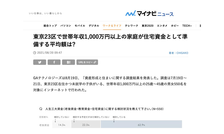 マイナビニュースにて、RENOSYが発表した「資産形成と住まい」に関する意識調査についてご紹介いただきました。