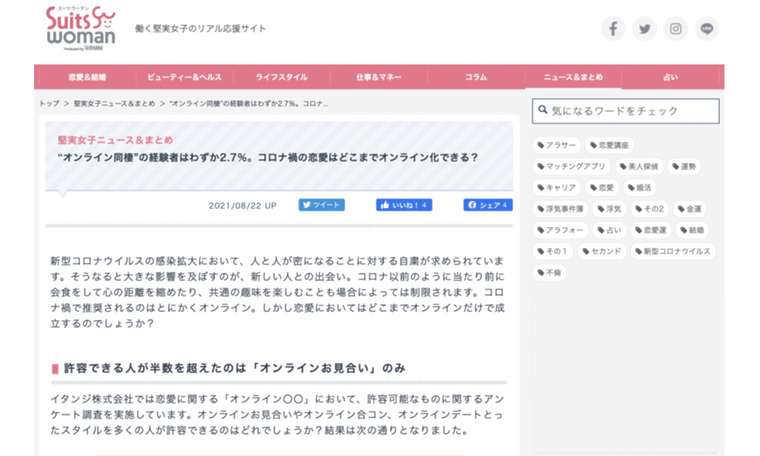 当社のグループ会社であるイタンジ株式会社が実施した、同棲に関する意識調査第一弾について取り上げていただきました。