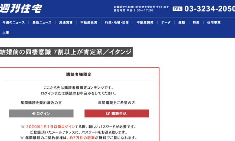 週刊住宅|『結婚前の同棲意識 7割以上が肯定派/イタンジ』