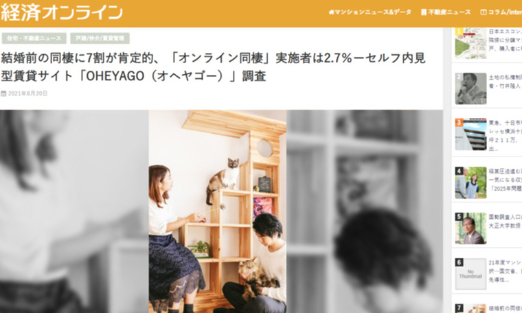 不動産経済オンラインにて、当社のグループ会社であるイタンジ株式会社が行った同棲に関する意識調査について取り上げていただきました。