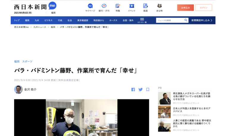 西日本新聞にて、東京2020パラリンピック競技大会に出場した、当社所属の藤野遼選手について取り上げていただきました。