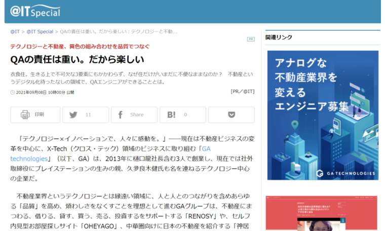 【掲載情報】(2021.09.08)@ITにて当社の Product Development Division/QA シニアマネージャー 柿崎憲のインタビューを掲載していただきました。