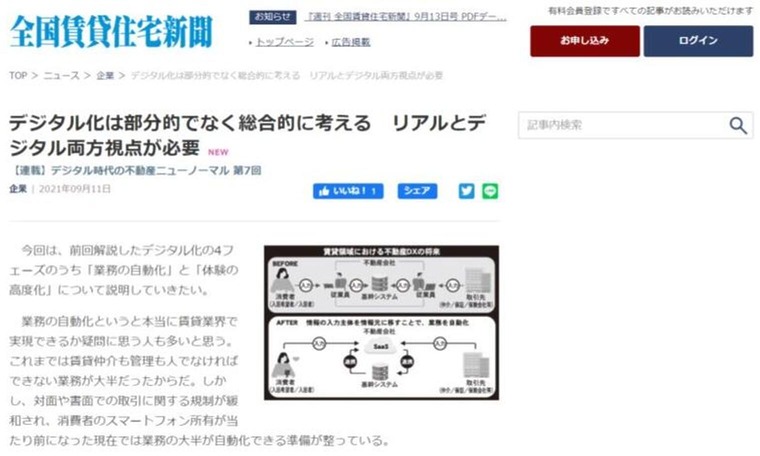 全国賃貸住宅新聞にて、 当社のグループ会社であるイタンジ株式会社の代表取締役野口真平の寄稿連載を掲載していただきました。