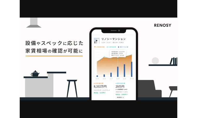 不動産テック総合サービス「RENOSY(リノシー)」を運営する当社は、不動産オーナー向けにマイページ上で提供しているAI査定機能をアップデートし、物件の設備やスペックに応じた家賃相場と過去の査定価格推移を確認できるようにいたしました。
