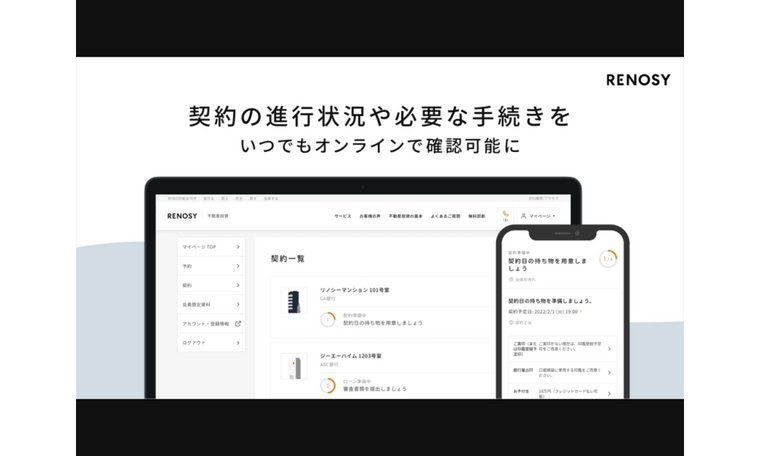 オンライン不動産取引マーケットプレイス「RENOSY(リノシー)」を運営する株式会社GA technologies(以下「当社」)は、RENOSYの不動産投資サービスをご利用のお客様向けに、マイページ上で契約の進行状況や必要な手続きを確認できる新機能の提供を開始しました。