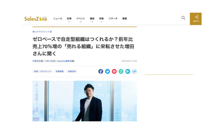 【掲載情報】(2022.5.31)SalesZineの連載「僕らのマネジメント論」に、当社のグループ会社であるイタンジ株式会社の執行役員・増田 直大のインタビュー記事を掲載いただきました。