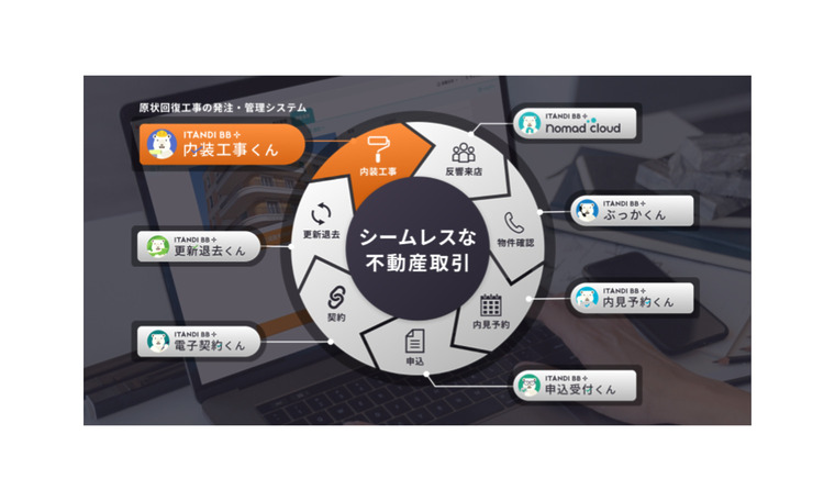 当社のグループ会社であるイタンジ株式会社は、賃貸物件の原状回復工事の発注・管理を支援するサービス「内装工事くん」の提供を順次開始いたします。(※1) 本サービスは、賃貸物件の原状回復工事において、管理会社の工事の発注・工事工程や書類の管理をサポートし、提携工事業者とのオンライン上でのやり取りを実現することで、業務を効率化するシステムです。