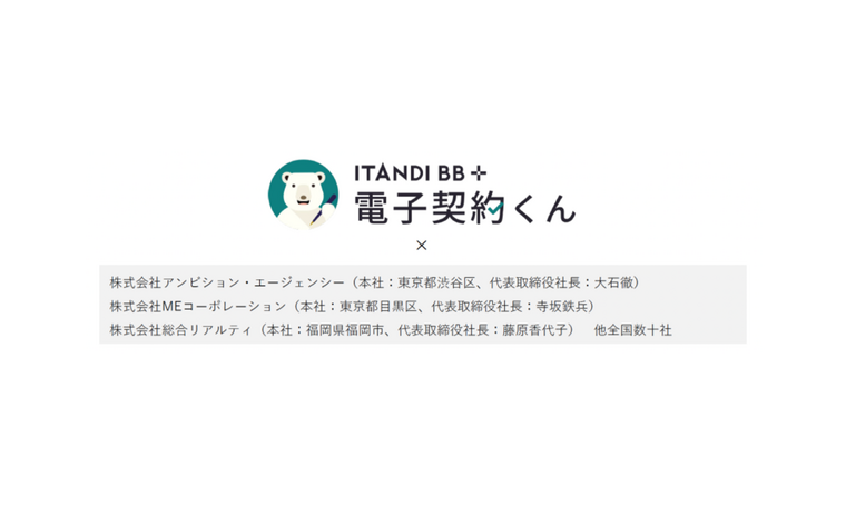 当社のグループ会社であるイタンジ株式会社は、2022年8月度、株式会社アンビション・エージェンシー、株式会社MEコーポレーション、株式会社総合リアルティを含む全国数十社の不動産管理事業を営む不動産会社へ、不動産関連電子契約システム「電子契約くん」を導入したことをお知らせします。