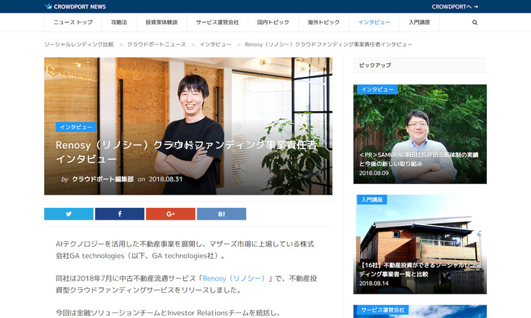 CROWDPORTにて、Renosyクラウドファンディング事業責任者の富本のインタビューを掲載していただきました。