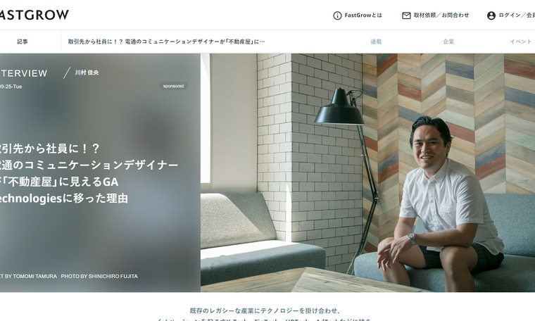 【掲載情報】FASTGLOW(2018.9.27)『取引先から社員に!?電通のコミュニケーションデザイナーが「不動産屋」に見えるGA technologiesに移った理由』