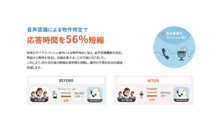 当社の子会社であるイタンジ株式会社(本社:東京都港区、代表:野口 真平、以下「イタンジ」)は、1月28日より不動産賃貸管理会社向け空室確認サービス「ぶっかくん」に音声認識機能を追加いたしました。