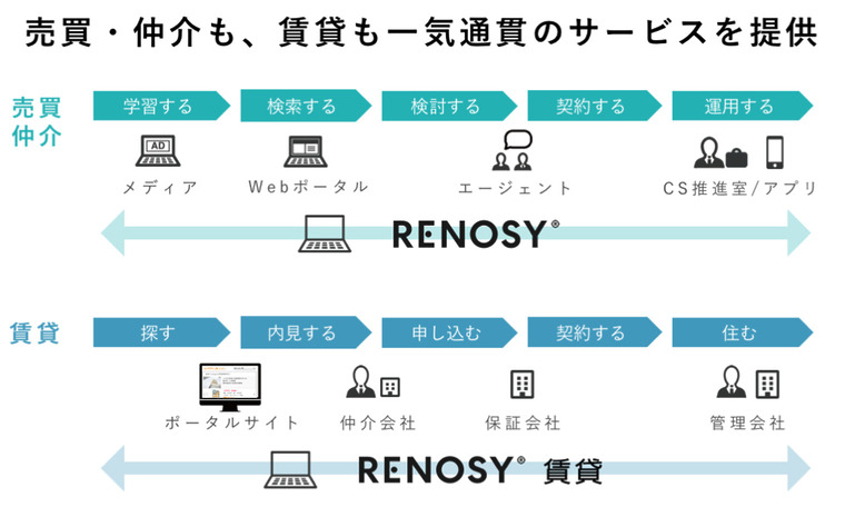 当社はこれまで、中古マンションに特化した不動産流通ポータルサービス「RENOSY」を運営してまいりました。ワンストップなリノベーションサービスに加え、ビッグデータを活用した価格推定、犯罪率や人口関連データといった近隣データの可視化などテクノロジーによる客観的な情報提供により、サービスを通じて中古不動産流通の活性化に取り組んでまいりました。