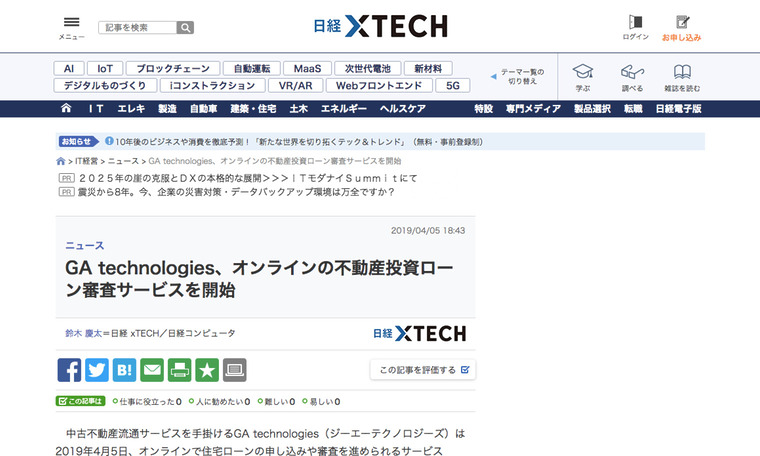 日経XTECHにて、オンライン住宅ローンサービス「Mortgage Gateway(モーゲージゲートウェイ)」をご紹介いただきました。
