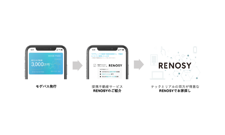 そしてこの度、住宅・不動産投資ローンあわせて約3年間で相談件数8,000件以上、媒介金額200億円超えの借り換え実績を有するMFS社と連携し、同社へ住宅ローン相談を寄せるユーザー向けに、モゲパスを発行した上で、RENOSYで予算に合わせた物件探しを効率的に行うサービスを開始いたします。