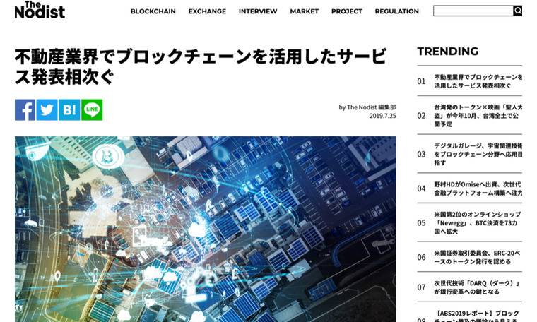 【掲載情報】The Nodist(2019.07.25)『不動産業界でブロックチェーンを活用したサービス発表相次ぐ』