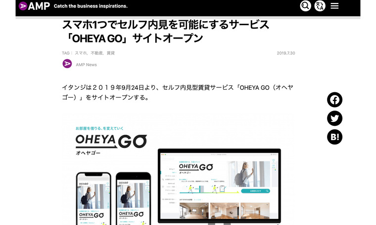 AMPにて、イタンジのセルフ内見型 賃貸サービス「OHEYA GO」についてご紹介いただきました。