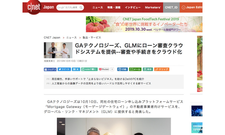 CNET Japanにて、株式会社グローバル・リンク・マネジメント社への住宅ローン申し込みプラットフォームサービス「Mortgage Gateway(モーゲージ ゲートウェイ)の提供決定を掲載していただきました。