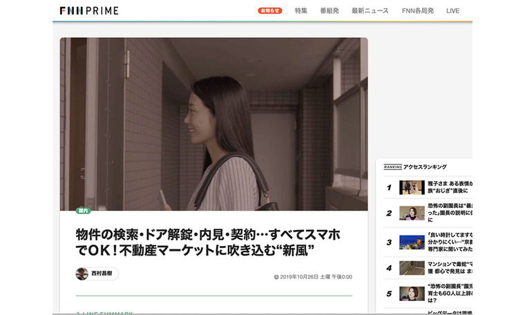 フジテレビ系28局が運営するFNN.jp PRIMEオンラインで、“不動産マーケットの新風”としてGAのRENOSYと、イタンジのOHEYAGOをご紹介いただきました。