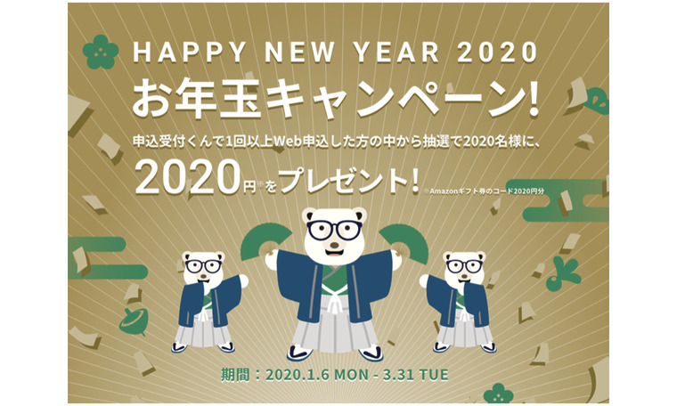 これを記念して、「申込受付くん」で申し込みをした賃貸仲介会社の方の中から抽選で2020名様に2020円(※2)が当たるお年玉キャンペーンを開始いたします。