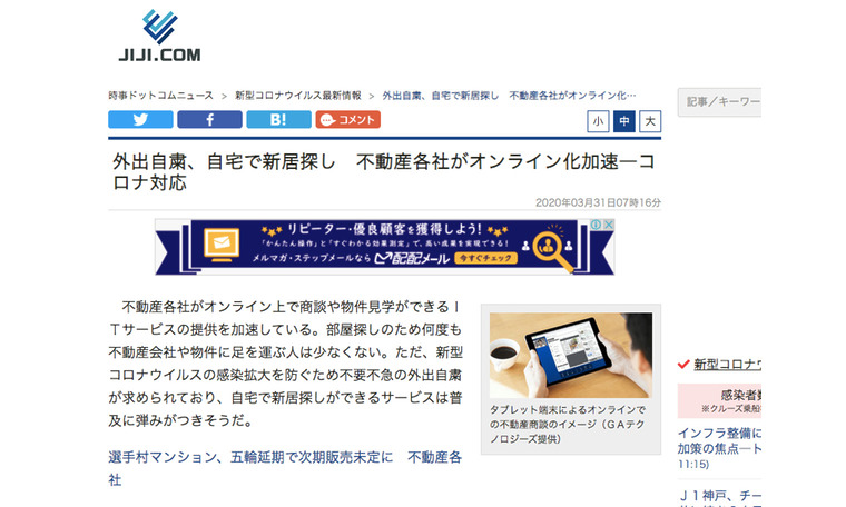 時事ドットコムにて、当社の不動産投資面談をオンラインで実施する体制をご紹介いただきました。