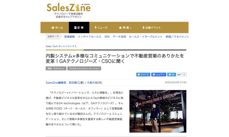 SalesZineにて執行役員 CSOの飯田が、「不動産営業の変革」「営業組織のありかた」をテーマにインタビューを受けました。