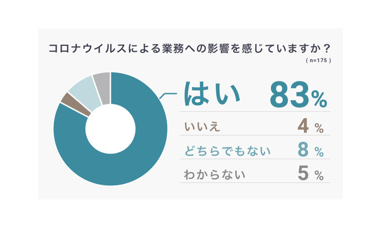 ・回答者のうち83%がコロナウイルスの影響を業務面で感じており、不動産業界全体に大きな影響が及んでいると考えられる。