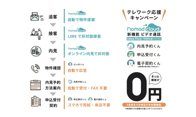 ①賃貸仲介向け顧客管理システム「ノマドクラウド」の新機能「ビデオ通話」の通話時間 1,000分(※)