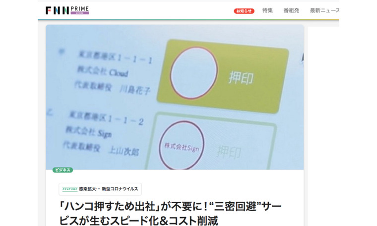 【掲載対応】FNN PRIME(2020.04.25)『「ハンコ押すため出社」が不要に!“三密回避”サービスが生むスピード化&コスト削減』