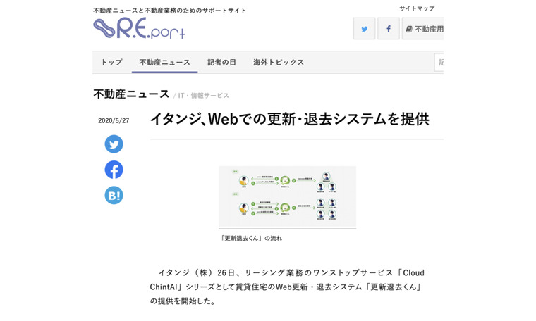 【掲載情報】RE.port(2020.05.27)『イタンジ、Webでの更新・退去システムを提供』