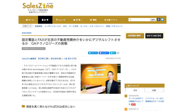 【掲載情報】SalesZine(2020.09.10)