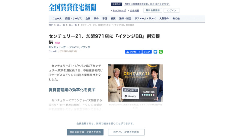全国賃貸住宅新聞|『センチュリー21、加盟971店に「イタンジBB」割安提供』