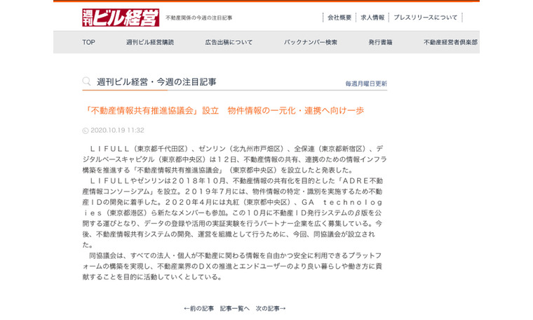 週刊ビル経営|『「不動産情報共有推進協議会」設立、物件情報の一元化・連携へ向け一歩』