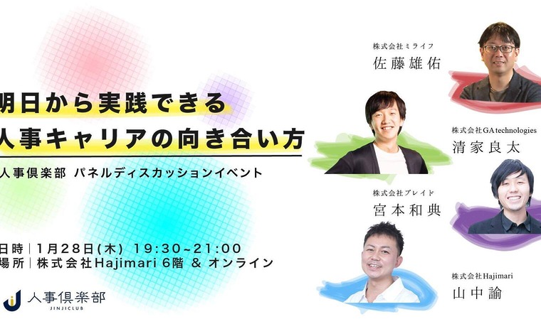 株式会社Hajimari が主催するイベント「【人事キャリアを歩んだ4名が語る】明日から実践できる人事のあり方やキャリアとは〜人事倶楽部イベントコンテンツVOL.1〜」 に、当社の CHRO(最高人事責任者)の清家が登壇いたします。