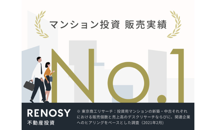 当社は、株式会社東京商工リサーチによる2021年2月の調査において、RENOSYがマンション投資における販売戸数並びに売上高で、初の全国No.1を獲得したことをお知らせします。また中古マンション投資に限っては、2020年1月の調査に続き2年連続となる全国No.1を獲得しました。