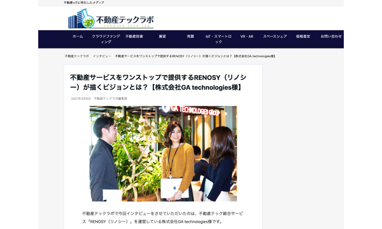 不動産テックメディア「不動産テックラボ」に、GA technologiesのインタビュー記事が掲載されました。