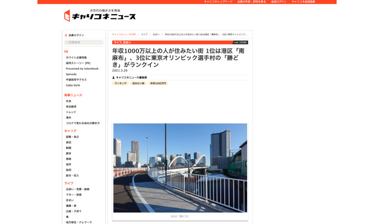 キャリコネニュースにて、当社が発表した「住みたい街ランキング2021 by RENOSY」についてご紹介いただきました。