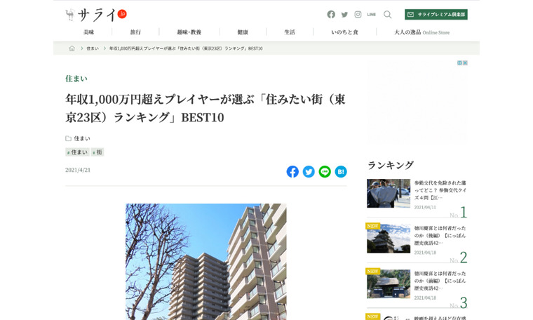 サライ.jpにて、当社が発表した「住みたい街ランキング2021 by RENOSY」についてご紹介いただきました。