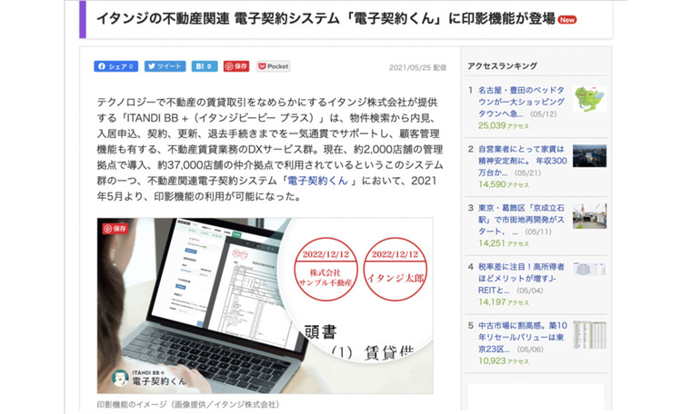 『イタンジの不動産関連 電子契約システム「電子契約くん」に印影機能が登場』