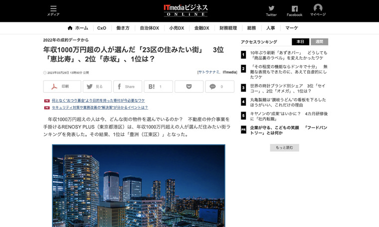 ITmediaビジネスにて、年収1,000万円超えプレイヤーが選んだ「住みたい街ランキング2023 by Modern Standard」をご紹介いただきました。