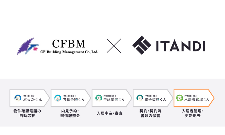 株式会社GA technologies[GAテクノロジーズ](本社:東京都港区、代表取締役 社⻑執行役員 CEO:樋⼝ ⿓、 証券コード:3491、以下「当社」)のグループ会社である、テクノロジーで不動産取引をなめらかにするイタンジ株式会社(以下「イタンジ」)は、2025年7月17日より、株式会社シー・エフ・ビルマネジメント(以下「シー・エフ・ビルマネジメント」)に、イタンジが提供する賃貸住宅の入居中業務管理システム「入居者管理くん」を導入します。これにより、シー・エフ・ビルマネジメントが管理する約8,500戸の賃貸物件において、入居中・更新・退去に関する手続きがオンライン化されます。(※1)