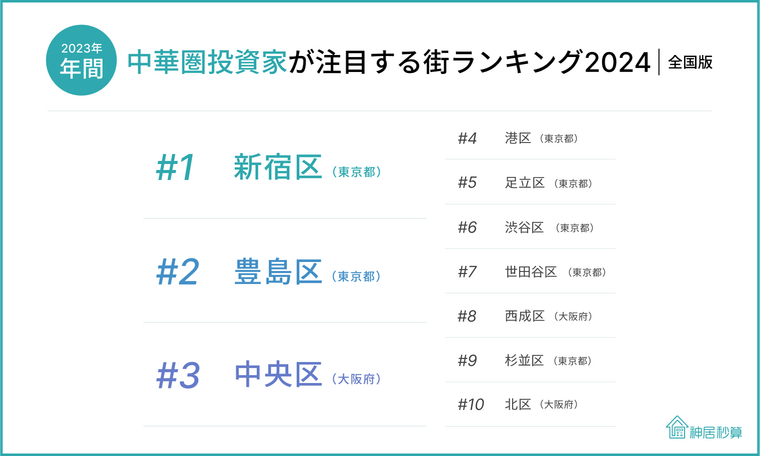 当社のグループ会社である、株式会社神居秒算(以下「神居秒算社」)は、中華圏(中国、台湾、香港)最大級の日本不動産プラットフォーム(※1)「神居秒算」でお問い合わせがあった物件を都道府県・市区町村ごとに集計した「中華圏投資家が注目する街ランキング(全国版) 2024」を初めて実施、発表します。