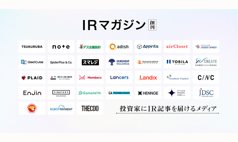 「IRマガジン」は、企業の枠を超えた共創により投資家のみなさまにIR記事を届ける新しい試みです。投資家の方は、「IRマガジン」をフォローすることでIRマガジン参加企業のIR記事の掲載通知を受け取る事ができ、いち早くIR記事を読むことができるようになります。これにより、「IRマガジン」参加企業は、他の企業に関心を持つ投資家を含めて、より多くの投資家にIR記事を届ける事が可能になります。